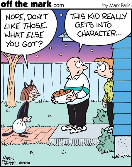 Honestly, not many go trick-or-treating anymore. But these cartoons are still freaking hilarious. 😆 Mark Parisi deserves every bit of praise he gets and more.